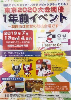 東京2020の射撃開催地である朝霞市でオリンピック・パラリンピック1年前イベントを行いました。